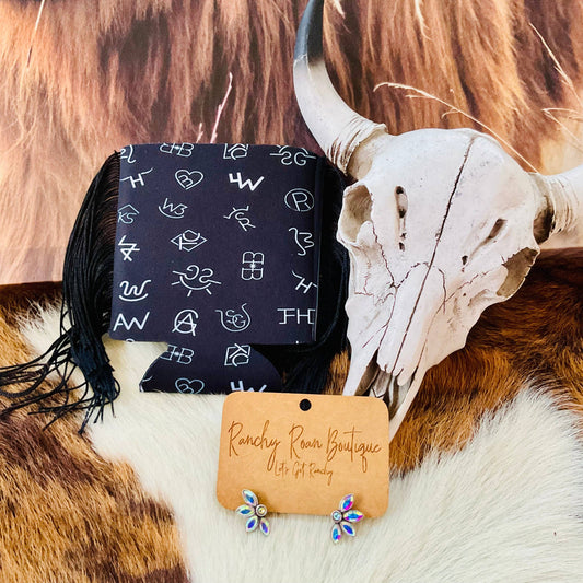 Black Ranch Brand Fringe Western Koozie | Wholesale Cowgirl Drink Sleeve