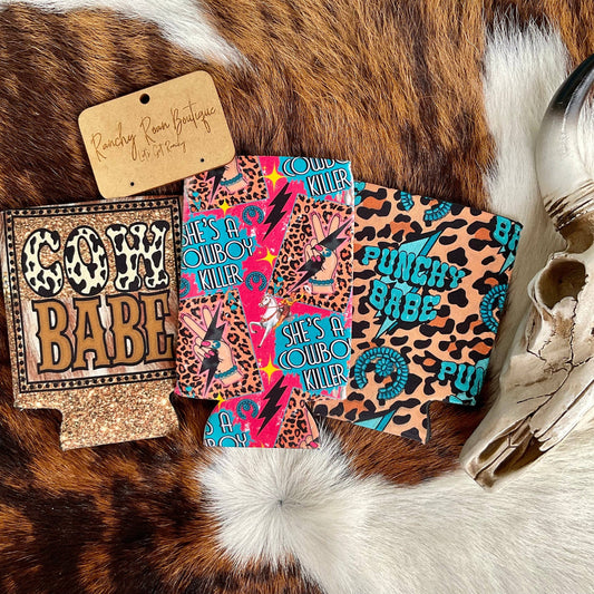 Neon Aztec Cowhide Koozie – Western Drink Sleeve